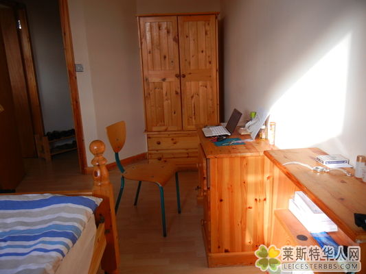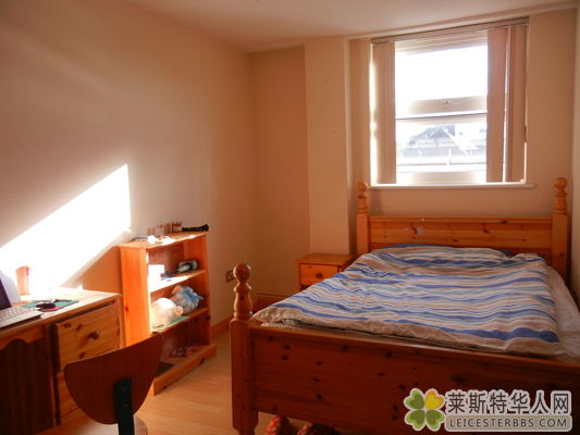 [color=Red]Flat 12[/color], Keswick House,30 Peacock Lane, LE1, 5PX。在[color=Red]市中心[/color]莱斯特教堂斜对面,Holiday Inn旁边。步行到德大和最大的TESCO超市,商业中心Hicross5分钟,菜市场3分钟,莱大15分钟,小公园和运河3分钟。安全,干净,明亮,温暖,舒适。[color=Red]两个人[/color]一套公寓,设备齐全,互不干扰。生活很方便。